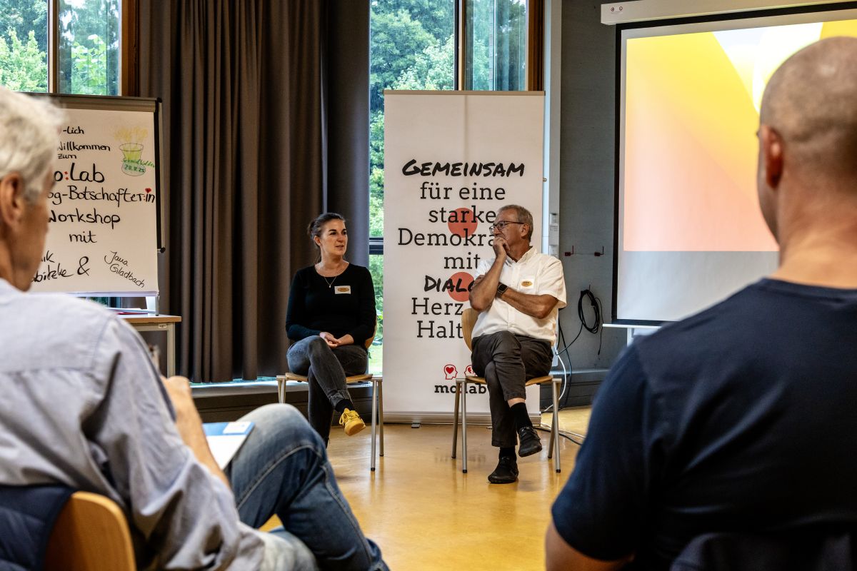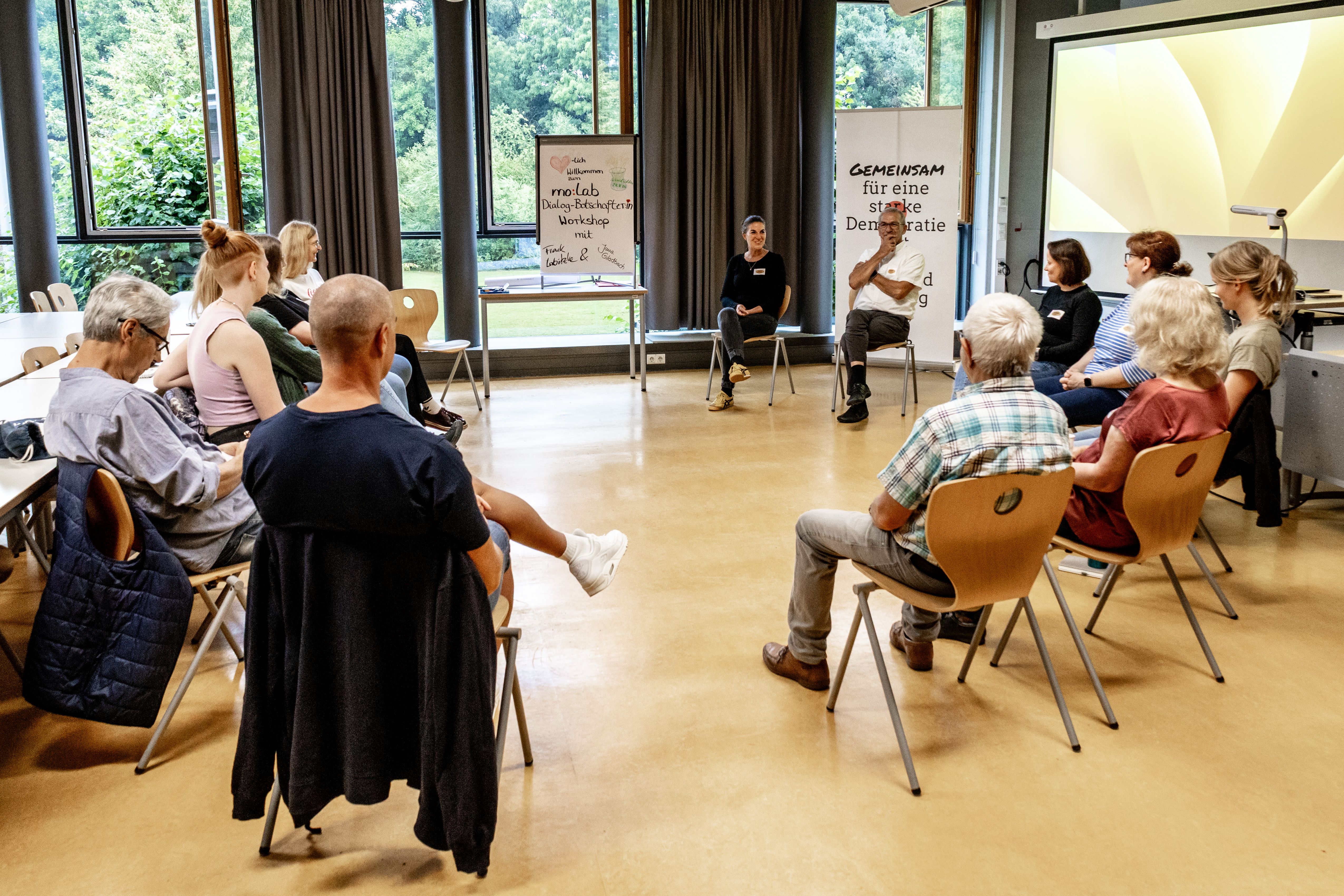 Am 28. August lud das WORT-Projekt Menschen aus der Region zu einem besonderen Workshop ein, der vom Verein Mo:Lab e.V. konzipiert und durchgeführt wurde. Der Verein wurde von der Fernsehmoderatorin und Filmregisseurin Mo Asumang sowie dem Kommunikationstrainer Frank Labitzke gegründet. Durch Seminare, Trainings und Aktionen setzt sich Mo:Lab für eine starke Demokratie mit Dialog, Herz und Haltung ein. Das Ziel: Menschen ermutigen, ins Gespräch zu kommen – auch und gerade dann, wenn die Meinungen weit auseinanderliegen.